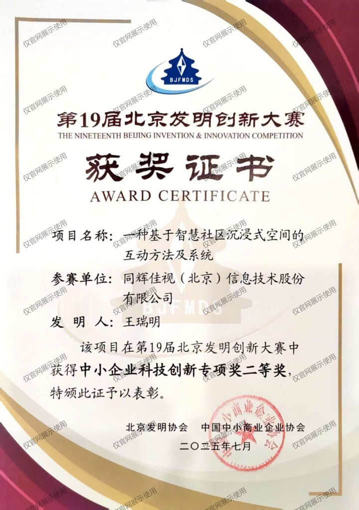 第19届北京发明创新大赛——小企业科技创新专项奖二等奖